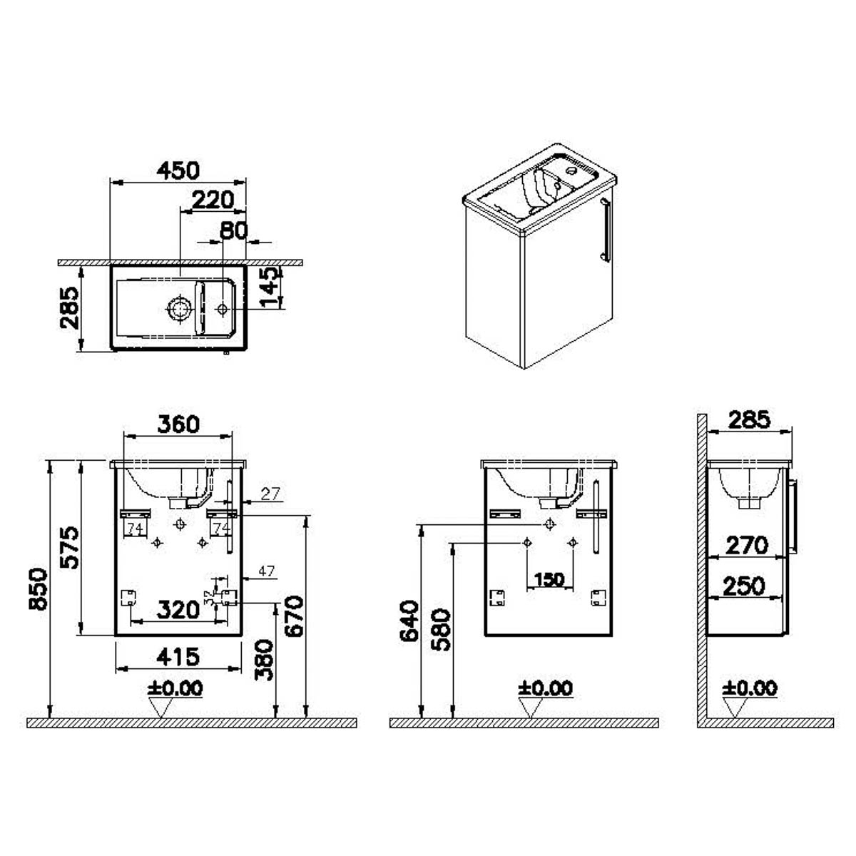 Unitate de baza lavoar baie, cu usi, 45cm, compact, cu dreapta orificiu pentru baterie, cordoba, cu angular lavoar / chiuveta baie stanga | 68061 Cordoba, Colectia Root Flat Vitra