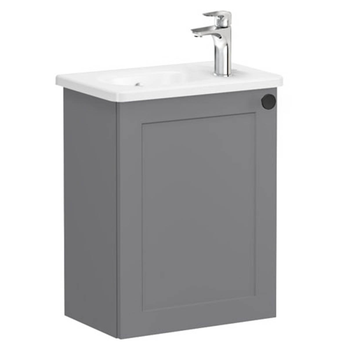 Unitate de baza lavoar baie, cu usi, 45cm, compact, cu dreapta orificiu pentru baterie, mat grey, cu rounded lavoar / chiuveta baie stanga | 68619 Matte gray, Colectia Root Classic Vitra