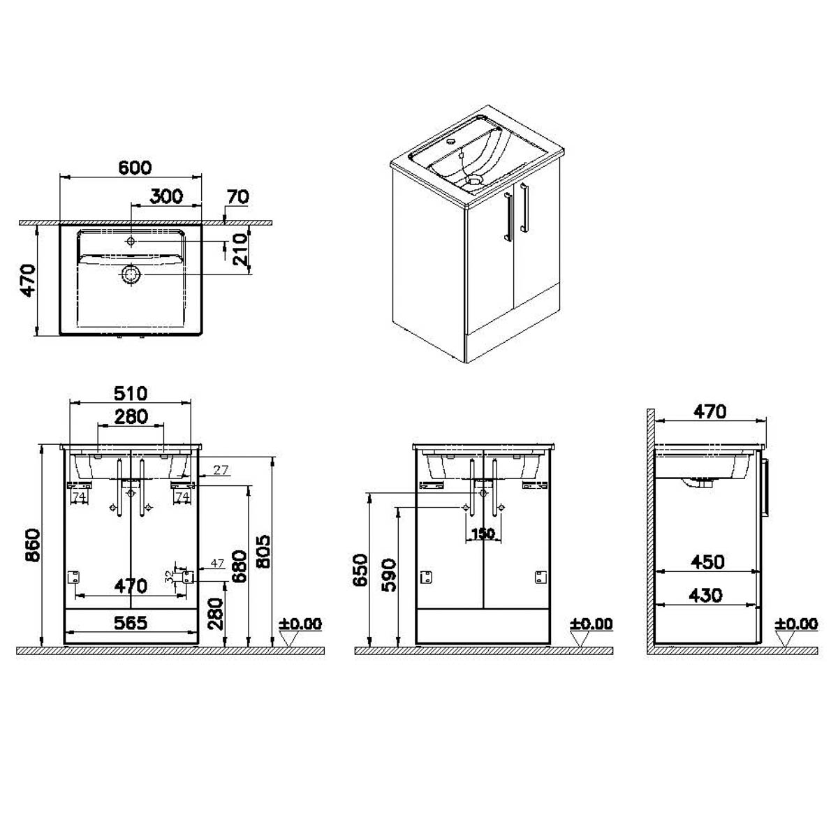 Descriere Calculată 1: Root, Vanity unit, 60 cm,w/doors, floor standing