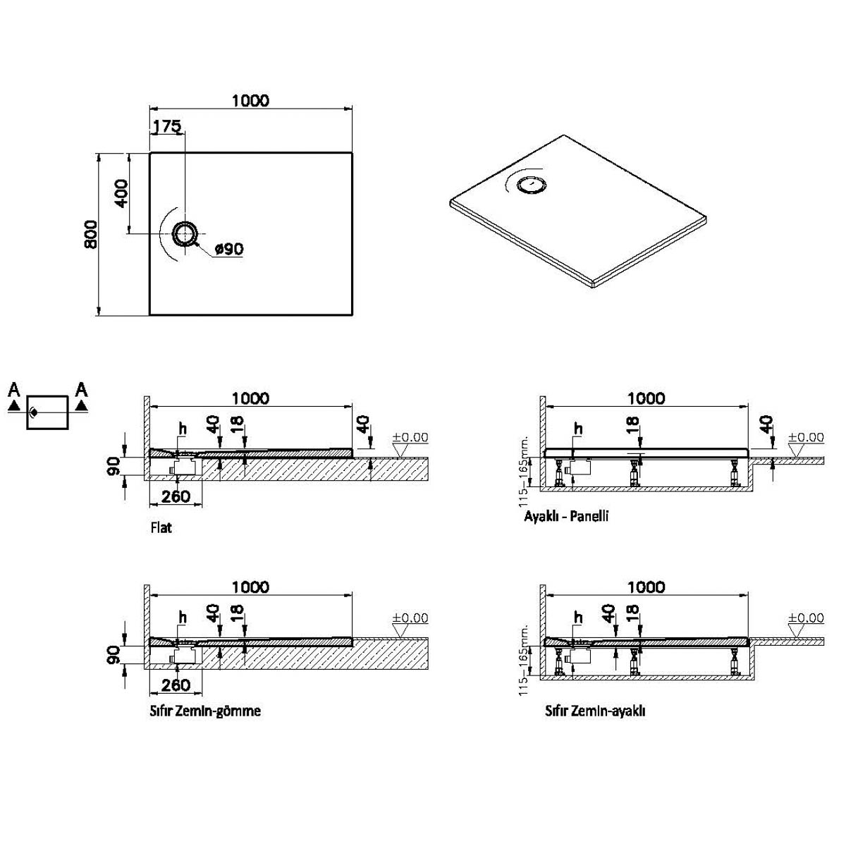 Cadita de dus subtire / super slim 100x80 rectangulara texturata antracit