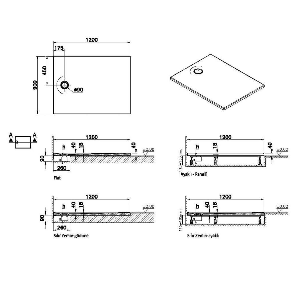 Vitra Cadita de dus slim 120x90 rectangulara texturata gri | 65280001867 Textured Gray, Colectia Leaf Vitra