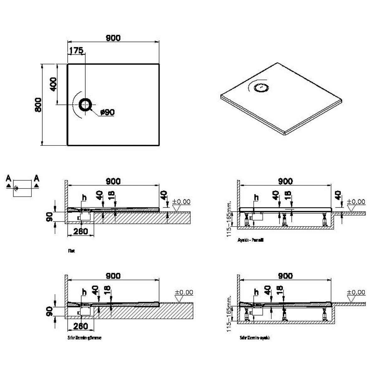 Forma Designului - Zonă de Duș: Rectangular